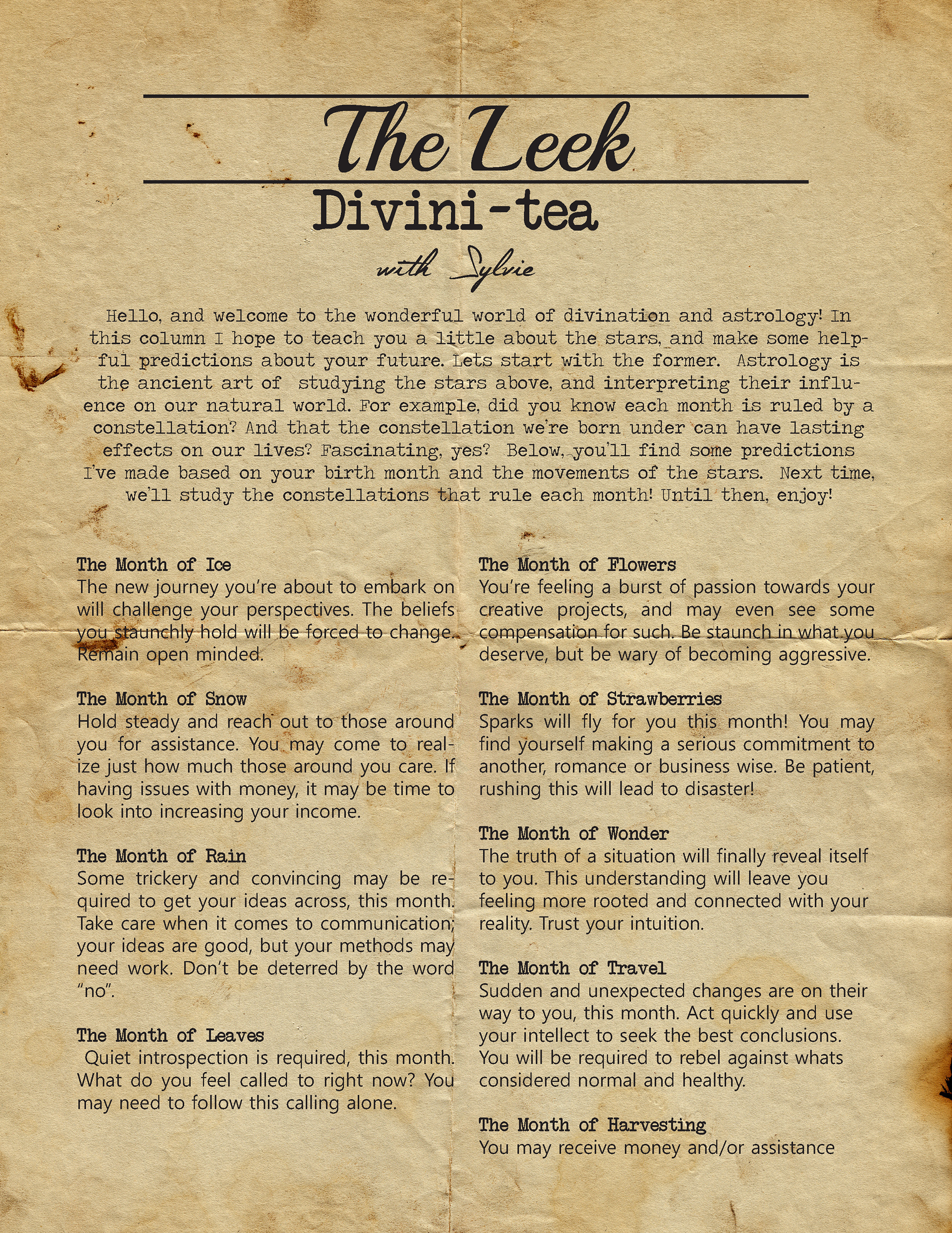 The Leek is a mock paper I do for a local Live-action Roleplay called Epoch on The Rock.